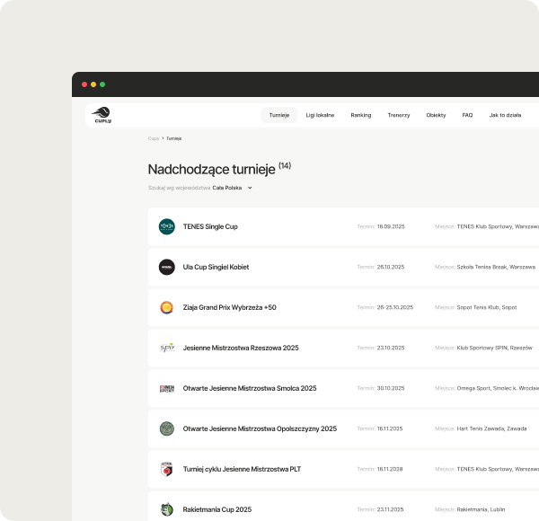 Przeglądaj kalendarz turniejów i lig lokalnych w Twoim mieście. Każdy znajdzie tu poziom idealny dla siebie.