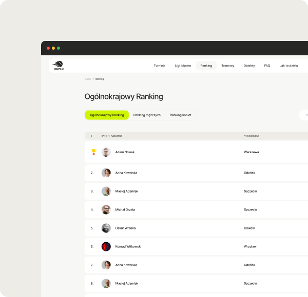 Obserwuj, jak z każdym wygranym setem pnijesz się w lokalnym i ogólnopolskim rankingu.